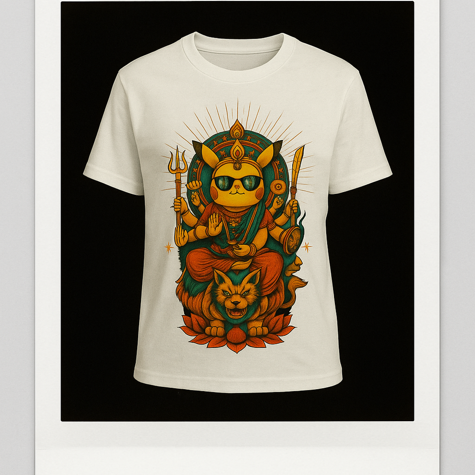 Bring together the energy of Navratri and the fun of Pokémon with this one-of-a-kind limited-edition tee from PokeNewton. Designed to stand out, this shirt features a bold fusion print where iconic Pokémon characters are reimagined in a vibrant festive avatar, symbolizing power, positivity, and celebration.